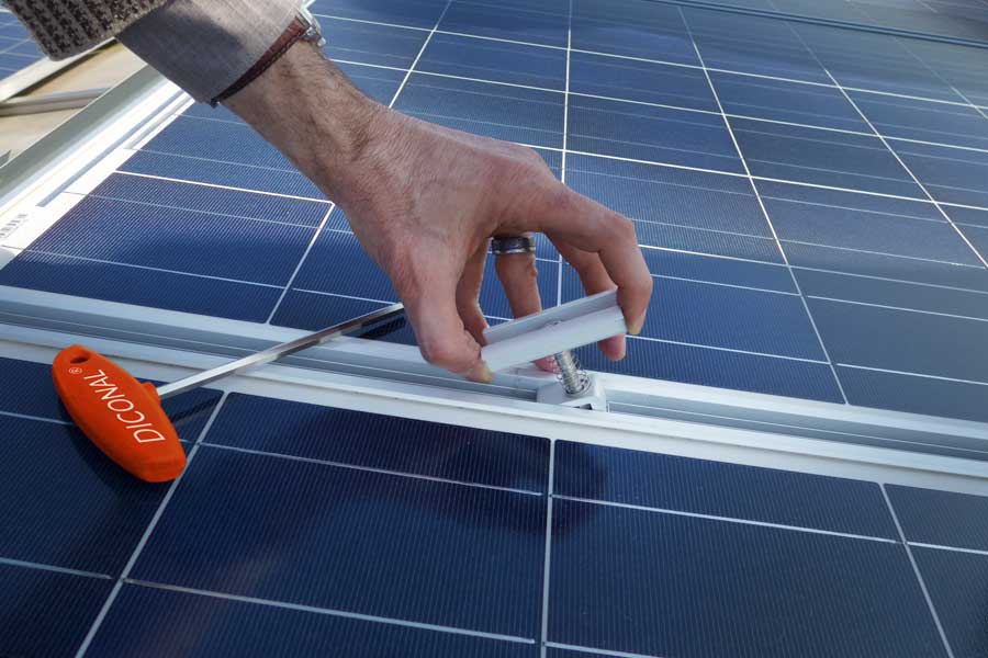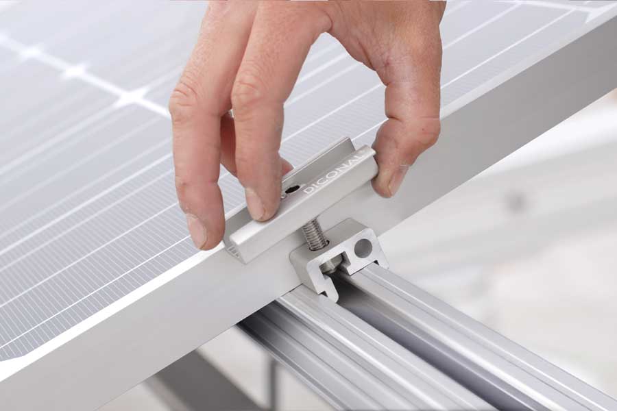 DICONAL® PV - Modulklemmen können auch einfach, schnell wieder entfernt werden. Damit ist es kein Problem einzelne defekte Module zu tauschen.