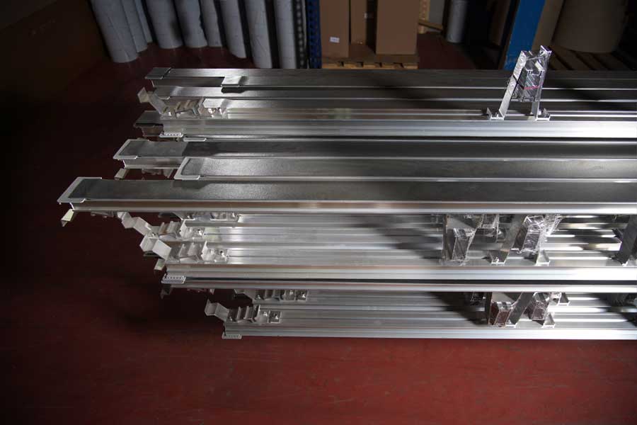 - Tragprofile P-80 aus der Transporthalterung nehmen und in Position mit dem Verbinder fixieren.
