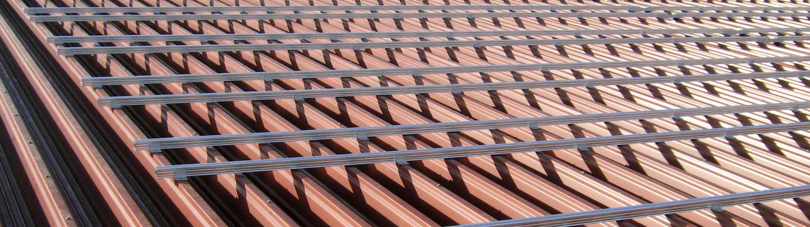 Dieses Projekt wurde mit Dachdurchdringenden Befestigungen realisiert. Um die Zahl der Montagepunkte zu reduzieren wurden Montagetische mit großen Spannweiten konstruiert.