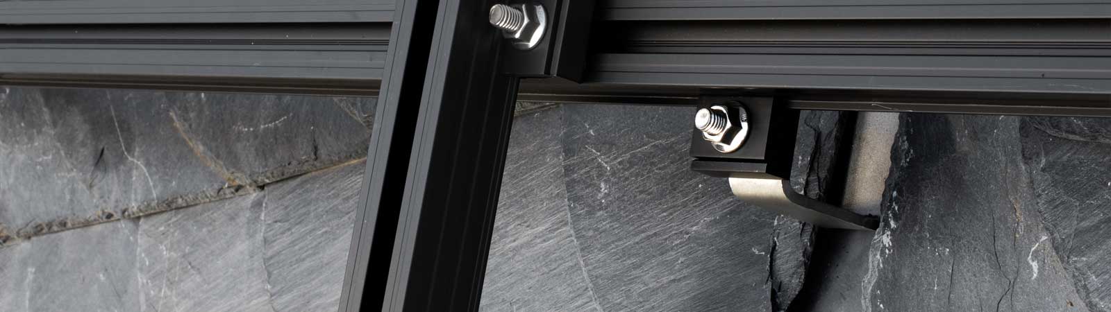 Ungewöhnliche Module wie z.B. Laminatmodule kommen oft zum Einsatz wenn das Aussehen eine große Rolle spielt. Schwarz eloxierte DICONAL® Bauteile bieten dezente Montagelösungen.